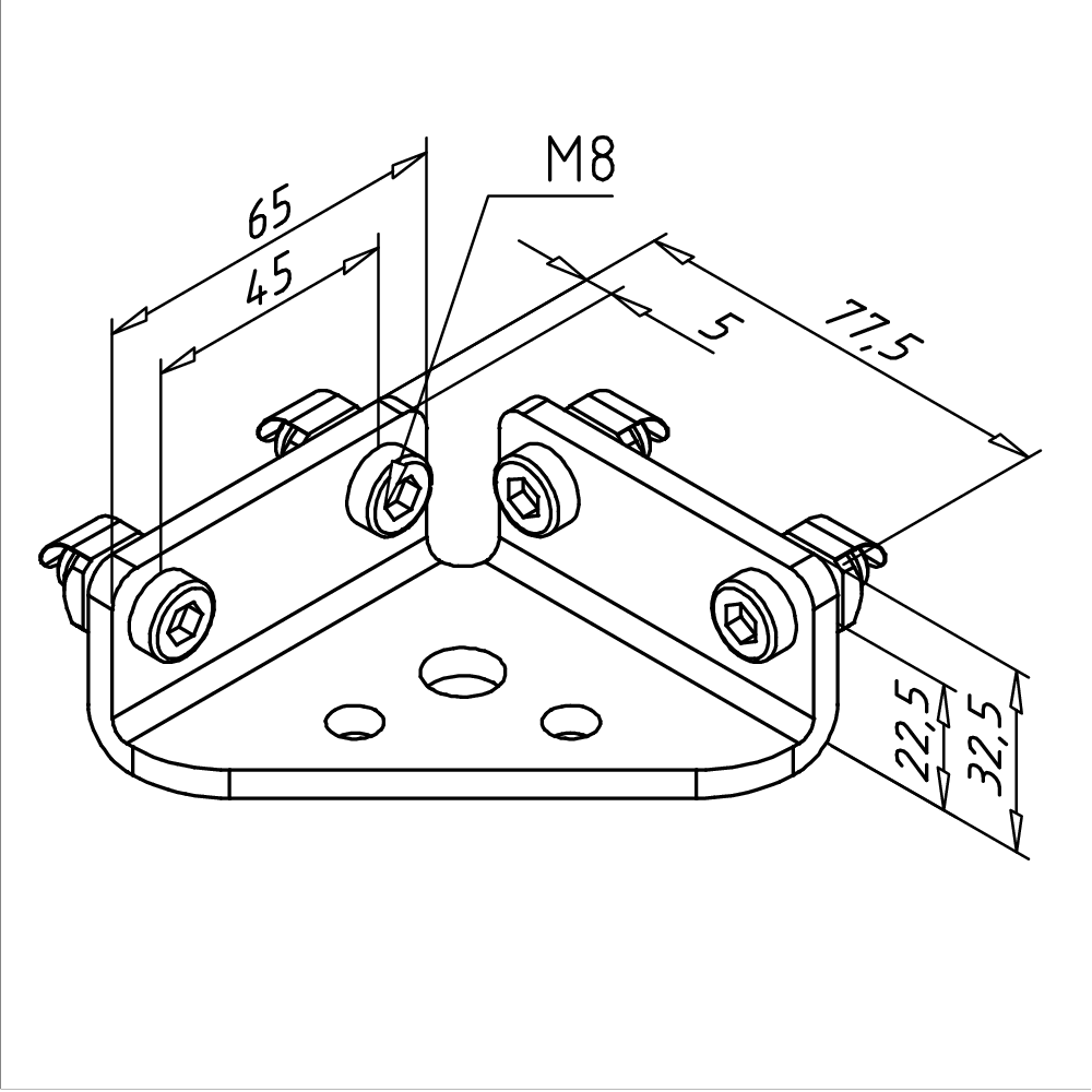Prirobnica 45 za zanesljivo povezavo dodatkov ali komponent na aluminijaste profile serije 45. Omogoča stabilno in natančno montažo.