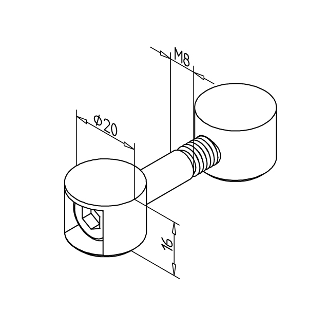 Spojni element 20 za ravno povezavo alu profilov, idealen za trdno in natančno spajanje konstrukcij.