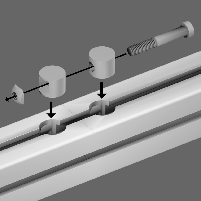 • Poleg tega je mogoče v neuporabljen utor profila vstaviti še eno T-letvico, kar omogoča natančnejšo poravnavo profilov med seboj