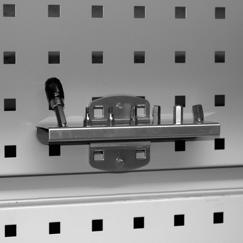 Nosilec nastavkov vijačnih konic omogoča urejeno razvrščanje, lažji nadzor zalog in učinkovito uporabo prostora.