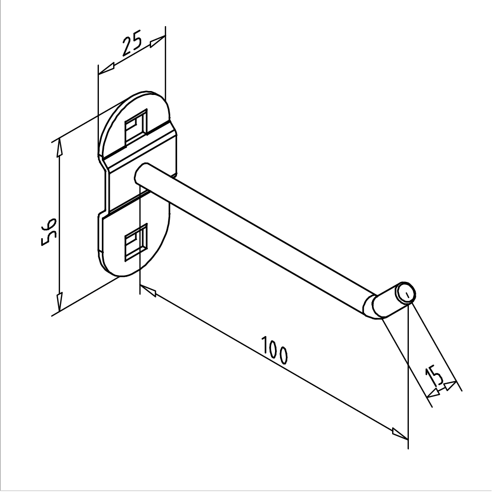 Držalo za orodje z ukrivljenim kavljem 100 mm omogoča varno in pregledno shranjevanje pripomočkov.