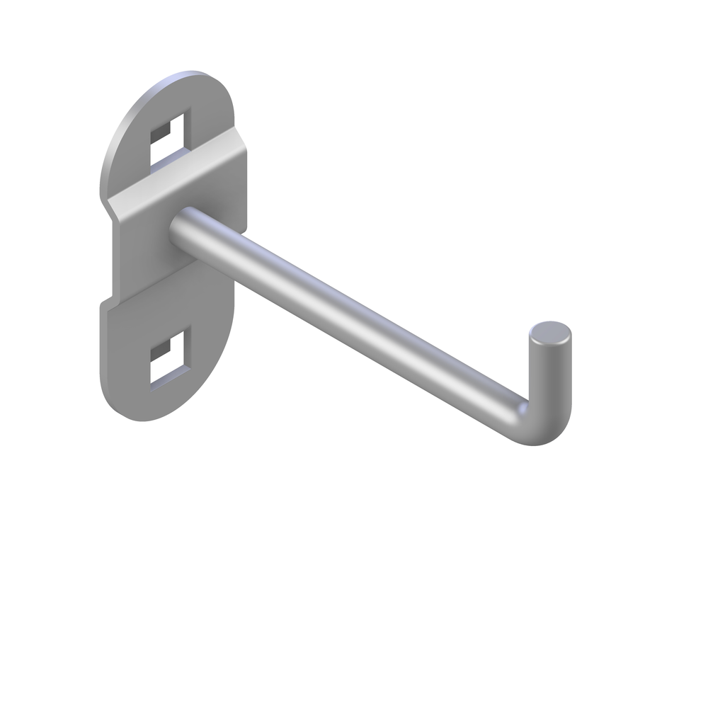 Dvojno obešalo za orodje z ukrivljenim kavljem 75 mm zagotavlja optimalno izrabo prostora na plošči.