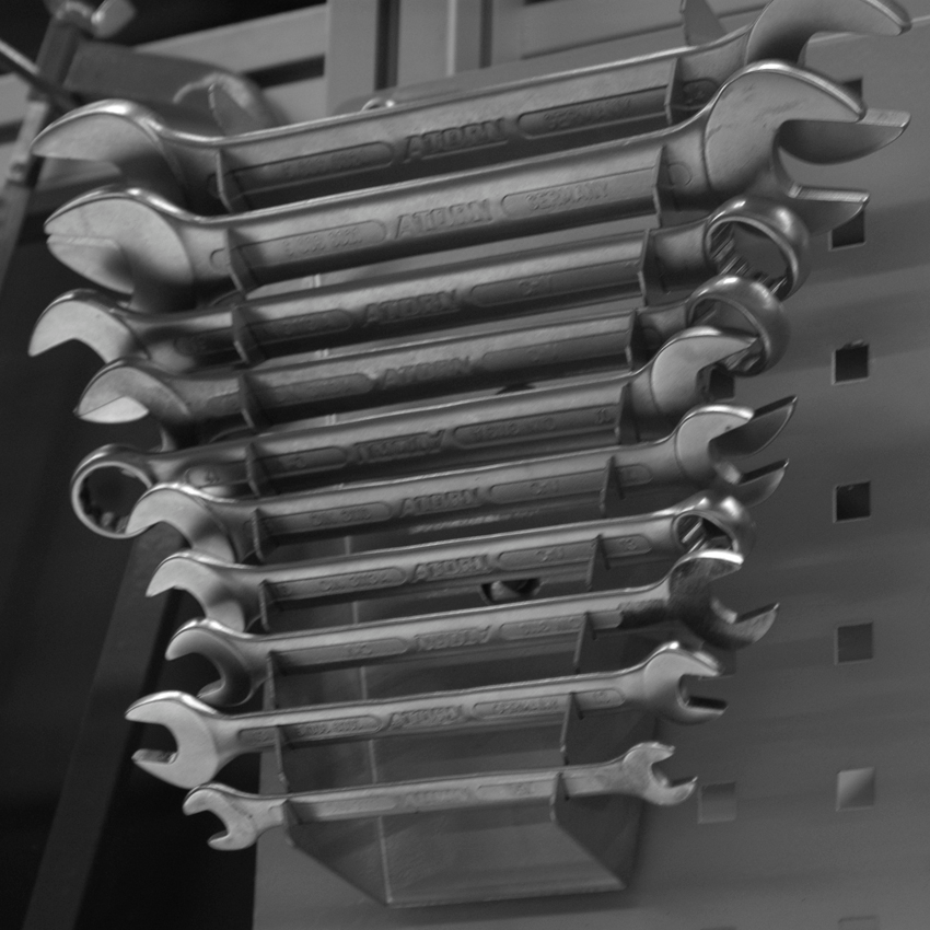 • Držalo za odprte ali obročaste ključe 1 x 7,5 x 30 mm, 2 x 6,5 x 23 mm, 2 x 5,5 x 20 mm, 2 x 4,5 x 15 mm, 3 x 4,0 x 10 mm