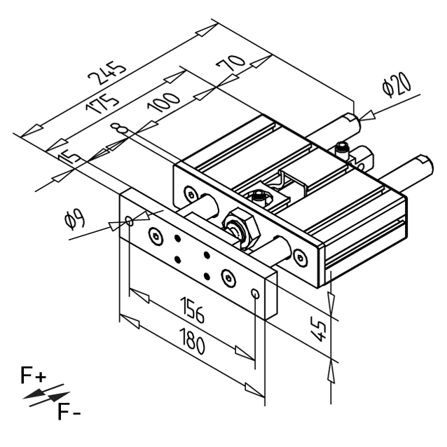 • Popolnoma sestavljeno z dvodelnim pnevmatskim cilindrom
