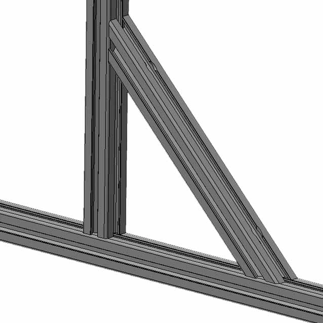 Ojačitveni element za dodatno stabilnost aluminijastih konstrukcij serije 30 z nadgradnjami v palični zasnovi.
