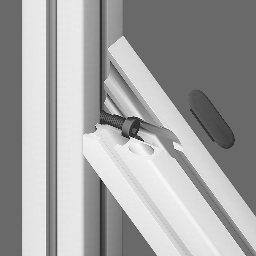 • Privijte na profilno režo okvirne konstrukcije z priloženim pritrdilnim materialom