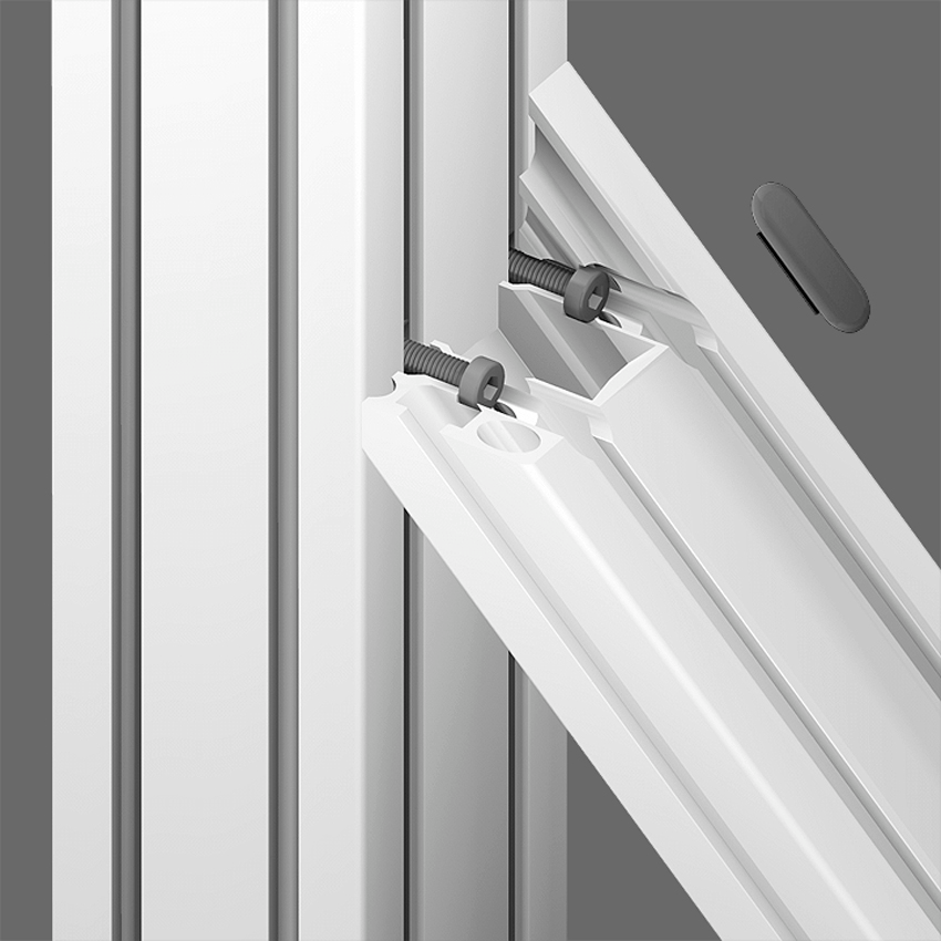 Ojačitveni element za dodatno stabilnost aluminijastih konstrukcij serije 90 z nadgradnjami v palični zasnovi.