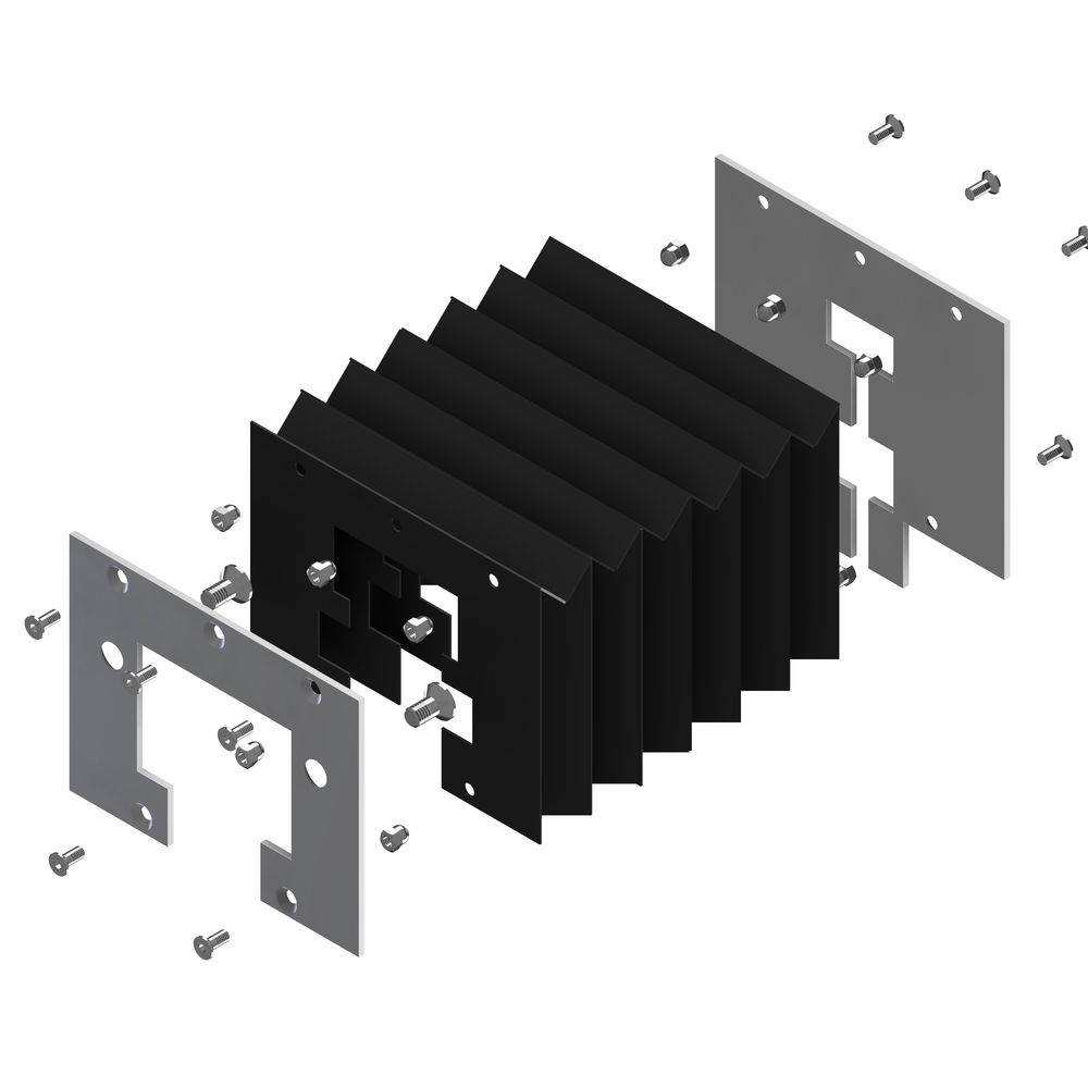 • Zaščitno gubo pritrdite s priloženimi vijaki na končni okvir