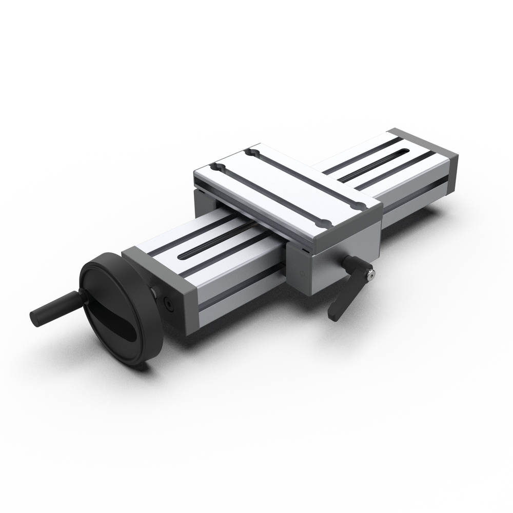 Linearna enota VEN 45x90 F s stransko zatezno enoto omogoča enostavno in natančno prilagajanje transportnih trakov, podajalnikov ter drugih naprav.