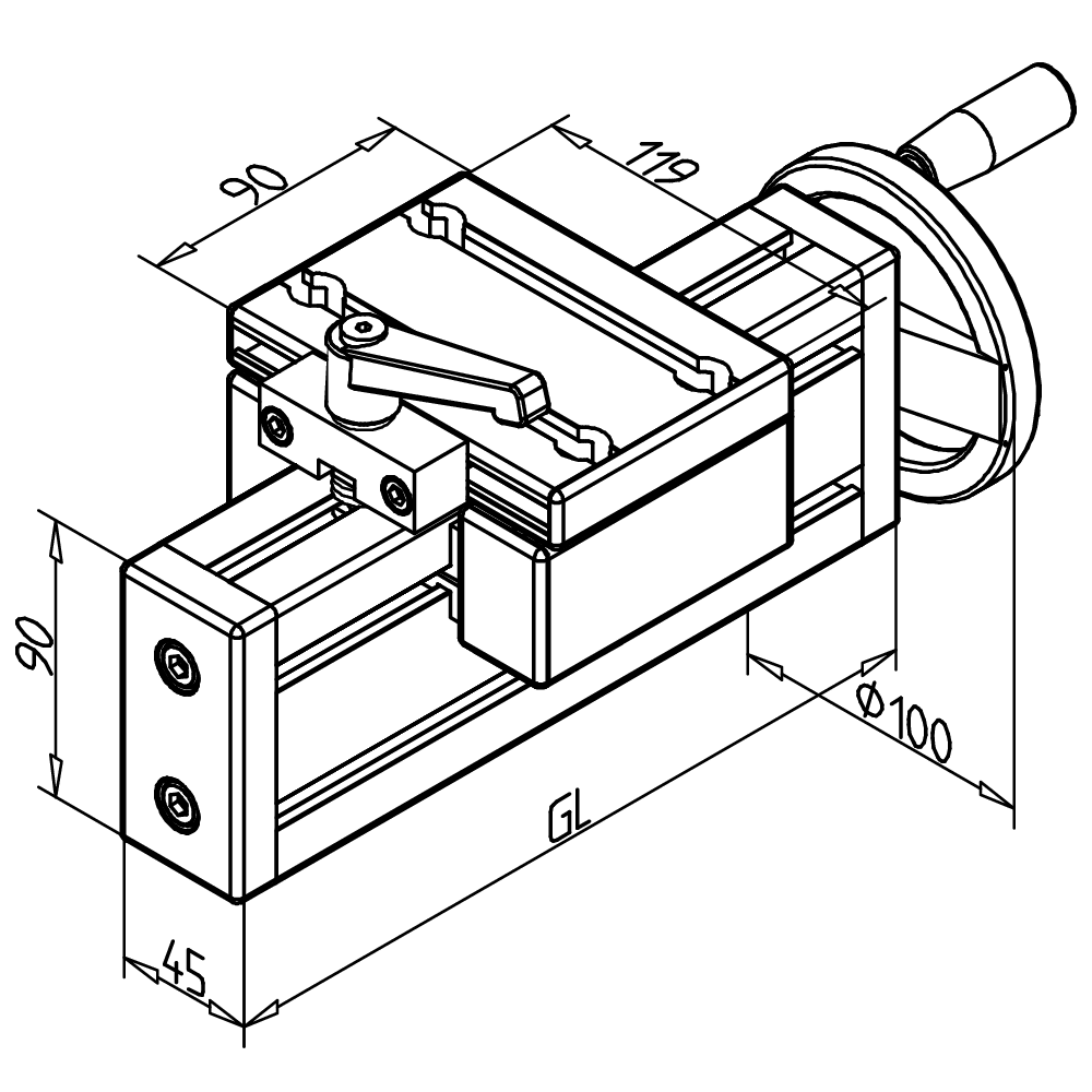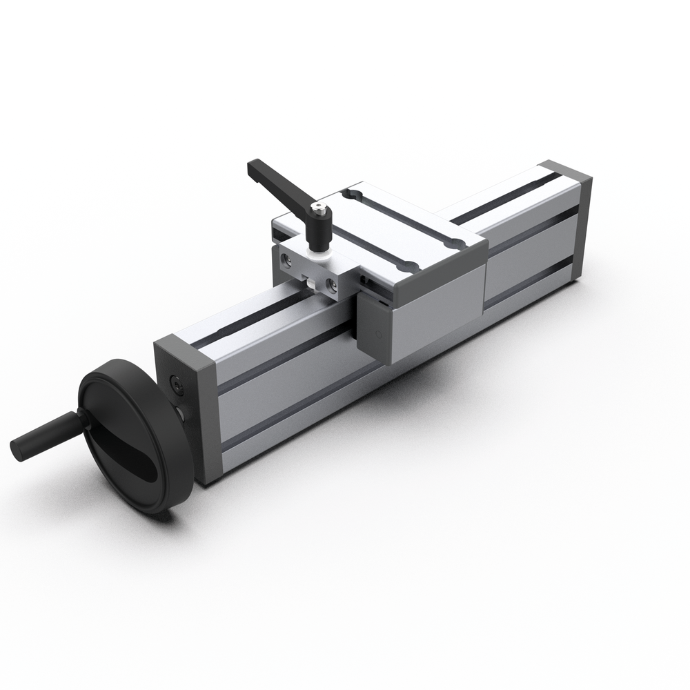 Linearna enota VEN 45x90 H z zgornjo zatezno enoto omogoča enostavno in natančno prilagajanje transportnih trakov, podajalnikov ter drugih naprav.