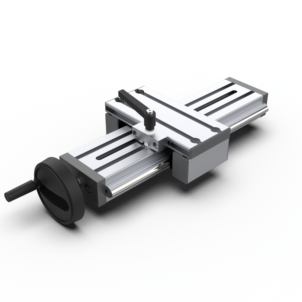 Linearna enota VEW 45x90 F z zgornjo zatezno enoto omogoča enostavno in natančno prilagajanje transportnih trakov, podajalnikov ter drugih naprav.