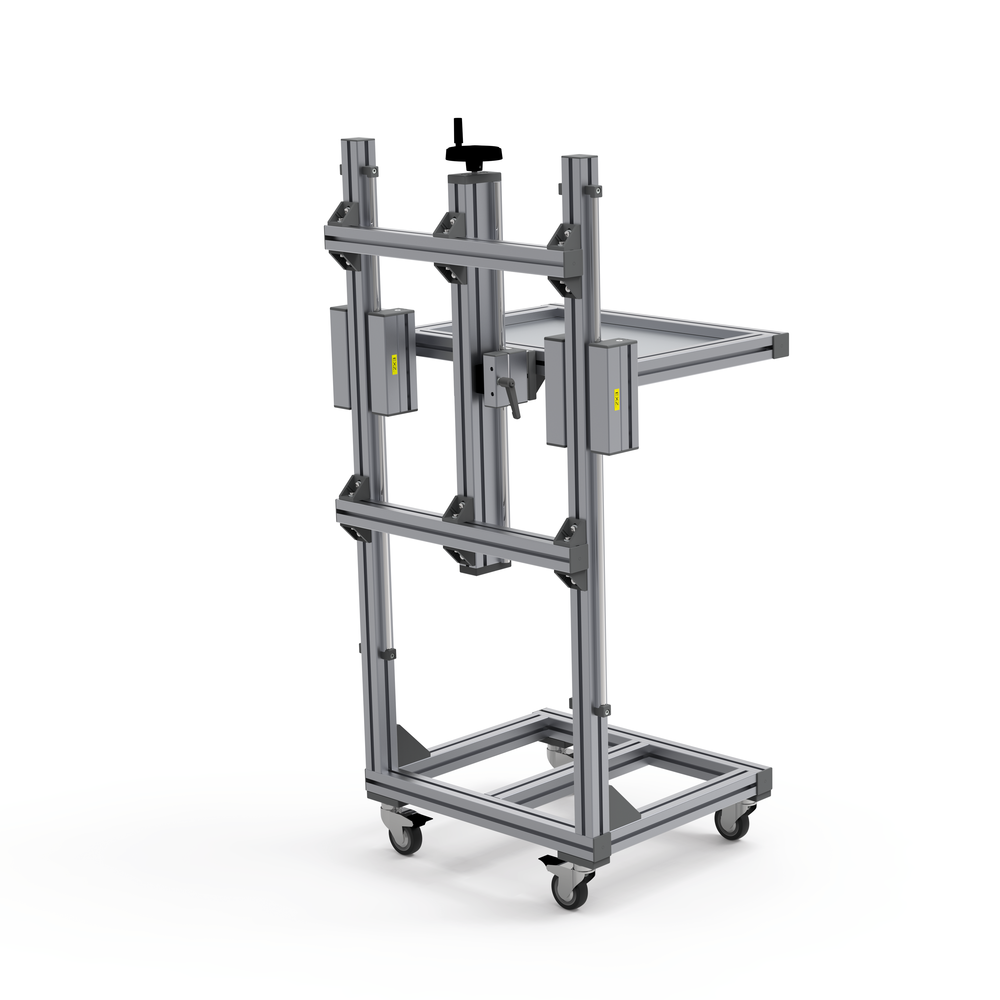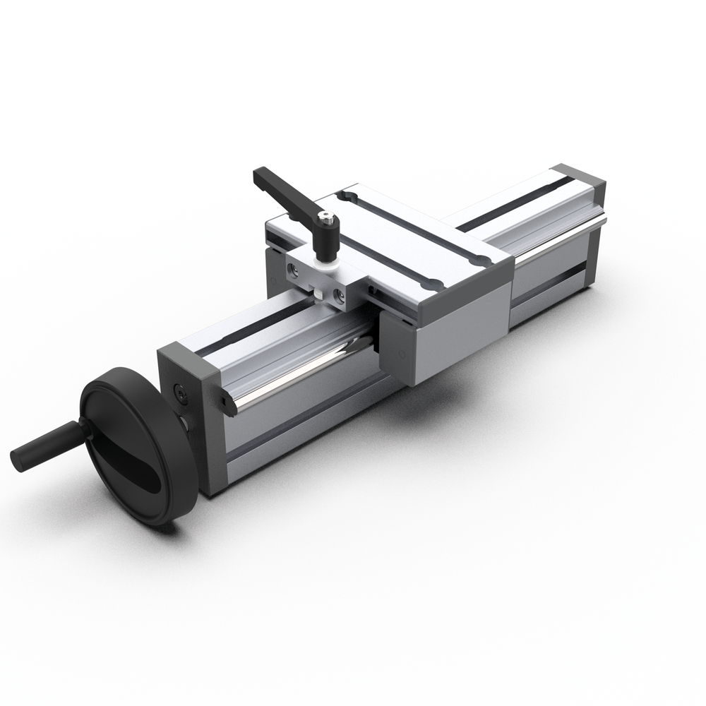 Linearna enota VEW 45x90 H z zgornjo zatezno enoto omogoča enostavno in natančno prilagajanje transportnih trakov, podajalnikov ter drugih naprav.