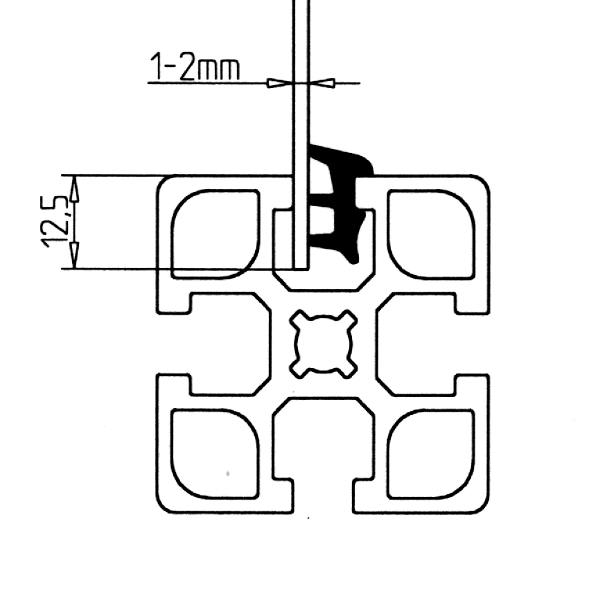 Gumijasto vstavljivo tesnilo 2 za aluminijaste profile serije 45, zagotavlja zanesljivo tesnjenje in pritrditev panelov.