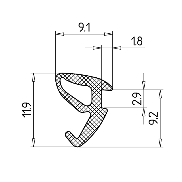 Gumijasto vstavljivo tesnilo za aluminijaste profile serije 30, zagotavlja zanesljivo tesnjenje in pritrditev panelov.