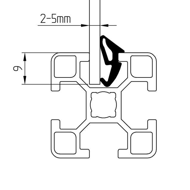 • Pritrditev in tesnjenje plošč neposredno v utoru profila, za plošče debeline 2–5 mm