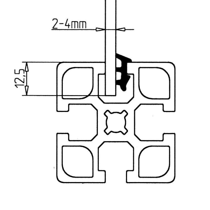 Gumijasto vstavljivo tesnilo 4 za aluminijaste profile serije 45, zagotavlja zanesljivo tesnjenje in pritrditev panelov.