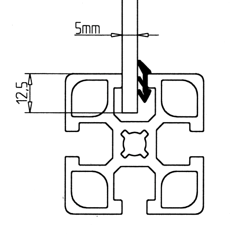 Gumijasto vstavljivo tesnilo 5 za aluminijaste profile serije 45, zagotavlja zanesljivo tesnjenje in pritrditev panelov.