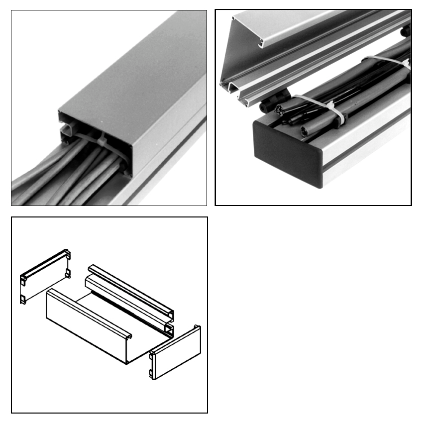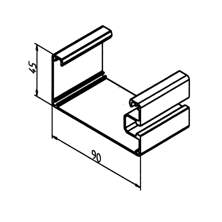 Kabelski kanal 90 za aluminijaste profile serije 45, namenjen organizaciji in zaščiti kablov v alu konstrukcijah.
