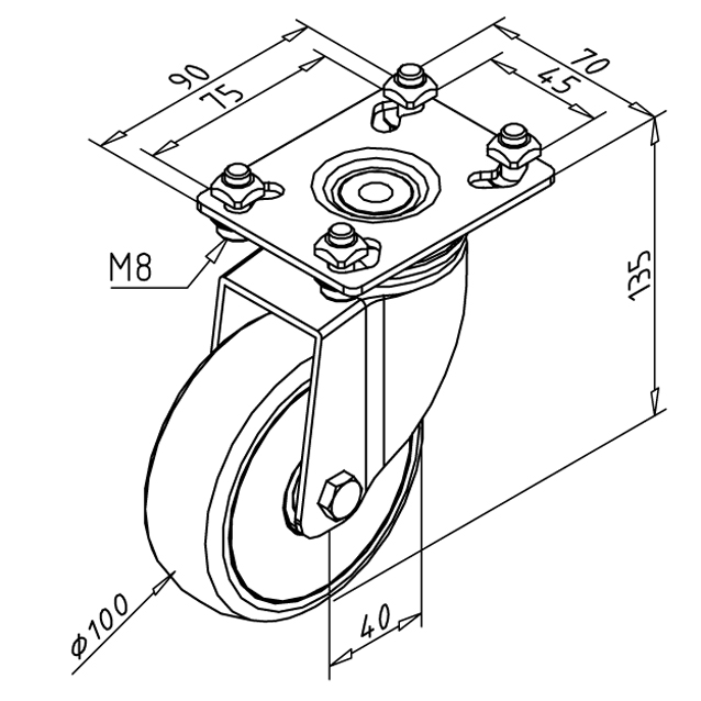 Vrtljivo kolo D100 x 135 z ESD zaščito za varno pozicioniranje in preprečevanje neželenega premikanja v občutljivih industrijskih okoljih.