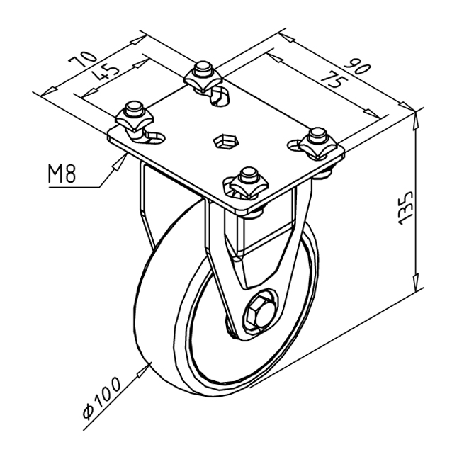 Fiksno kolo D 75 x 103 z ESD zaščito za stabilno podporo in gladko gibanje v različnih industrijskih in pohištvenih aplikacijah v občutljivih industrijskih okoljih.