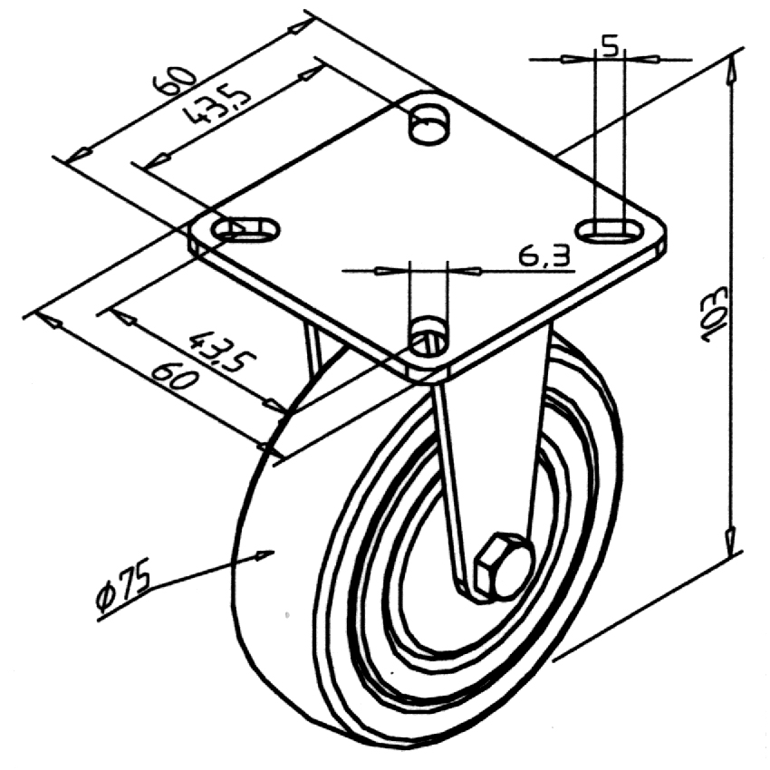 Fiksno kolo D 75 x 103 za stabilno podporo in gladko gibanje v različnih industrijskih in pohištvenih aplikacijah.