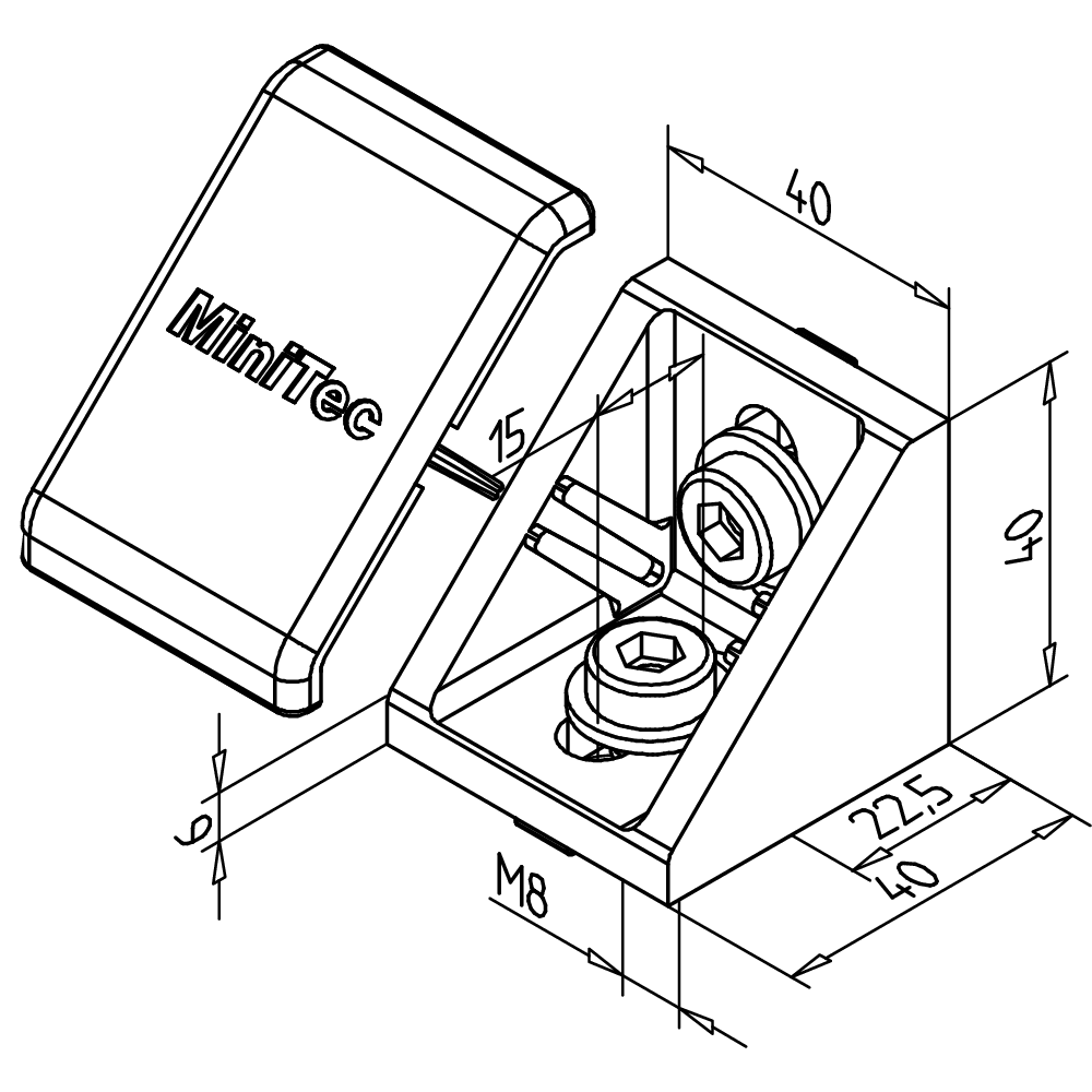 Inox kotnik 45 VA-Z z M8 kvadratno matico in pozicijskim fiksiranjem za enostavno montažo in natančno pozicioniranje brez dodatne obdelave. Povečuje stabilnost konstrukcije.