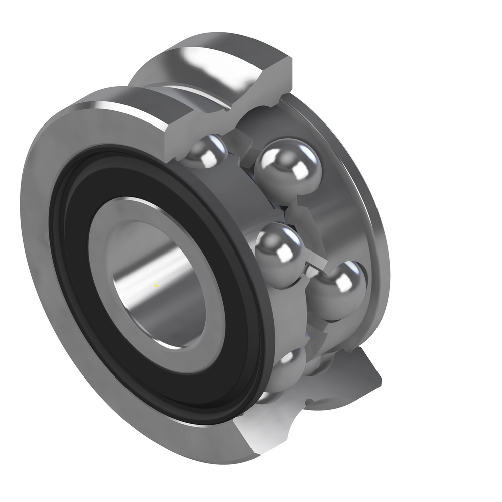 • Dvovrstni kotni kroglični ležaj, valoviti utor izveden kot gotski lok