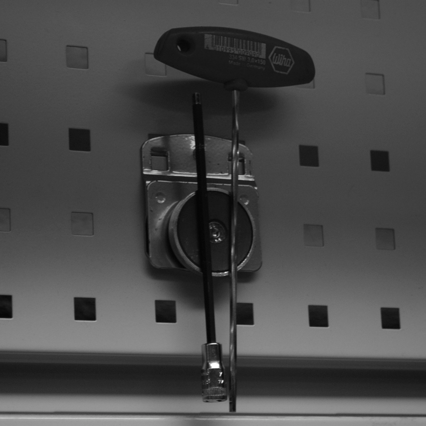 Magnetno držalo za orodje omogoča varno pritrditev, shranjevanje vseh vrst orodja in hiter dostop do najpogosteje uporabljenih kosov.