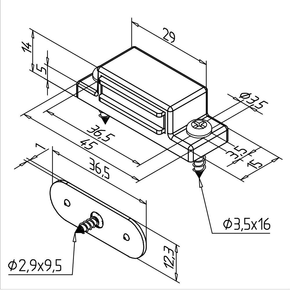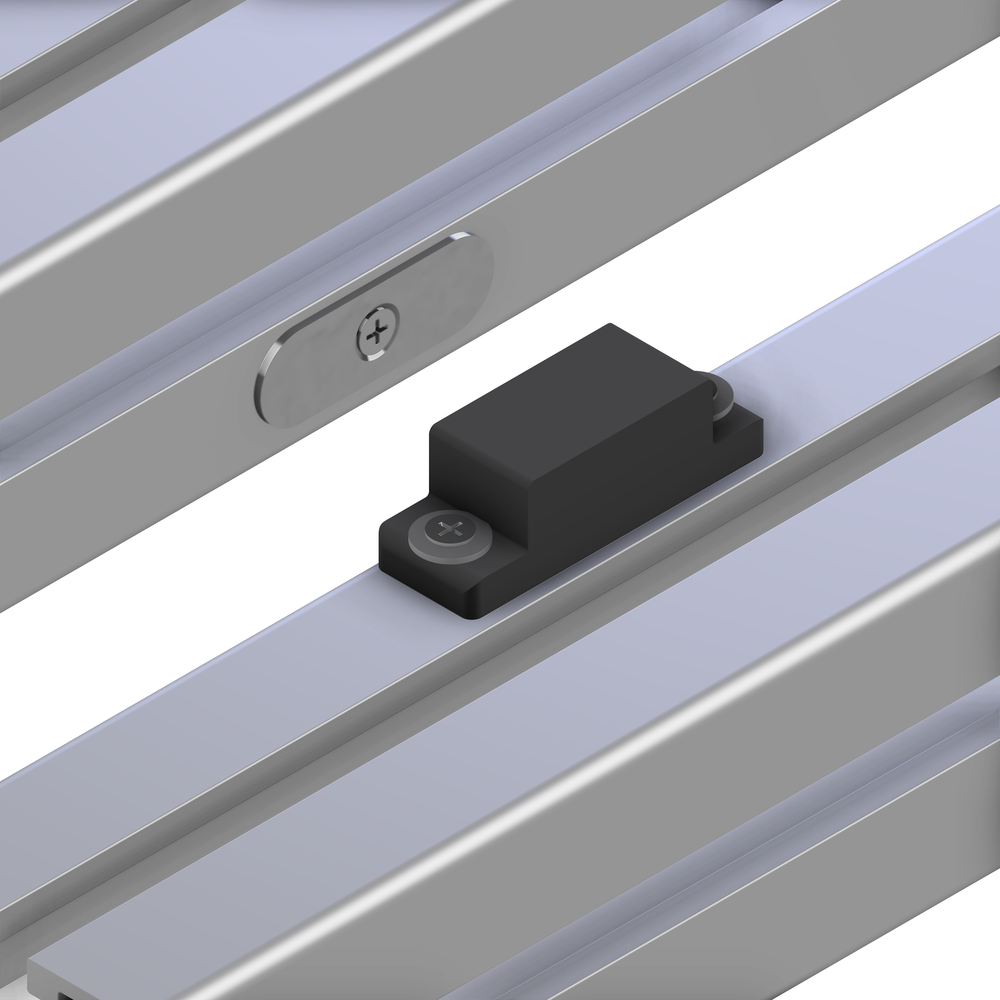 Zanesljiv magnetni zapah za nihajna vrata z močnim oprijemom in hitrim sproščanjem, primeren za pritrditev lahkih površinskih elementov.