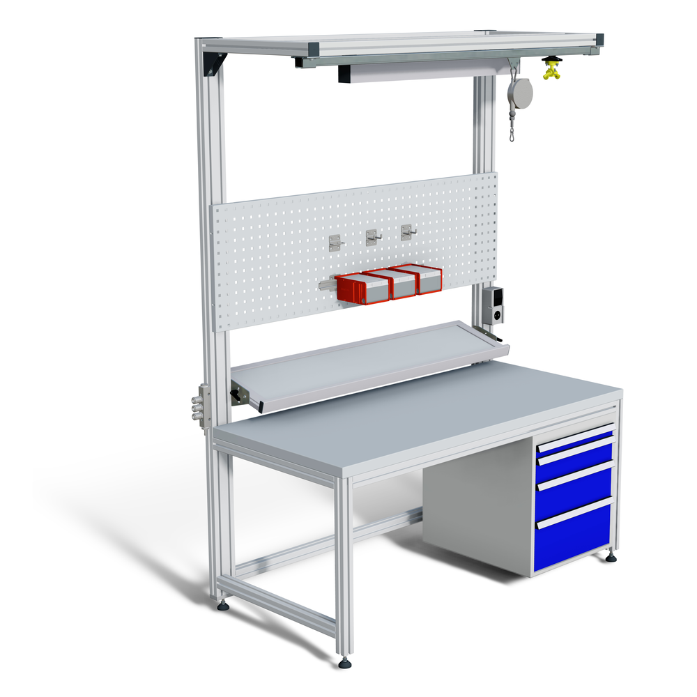 Delovna miza z nadgradnjo omogoča prilagodljivo postavitev orodja, večjo preglednost materiala in optimalno izrabo prostora.