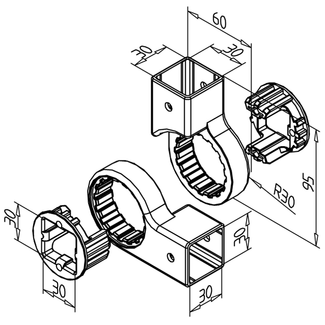 Spojni element 30 za vsestransko in zanesljivo povezavo aluminijastih profilov. Idealen za kompleksne okvirje, modularne konstrukcije in rešitve po meri.