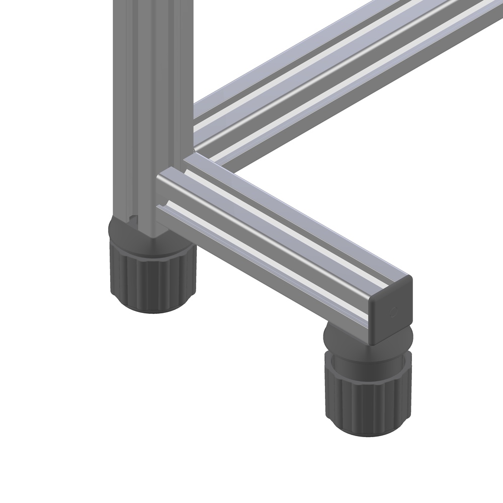 Kompaktna nastavljiva noga za aluminijaste profile serije 30, ki zagotavlja stabilno in estetsko pritrditev manjših konstrukcij v industrijskih aplikacijah.