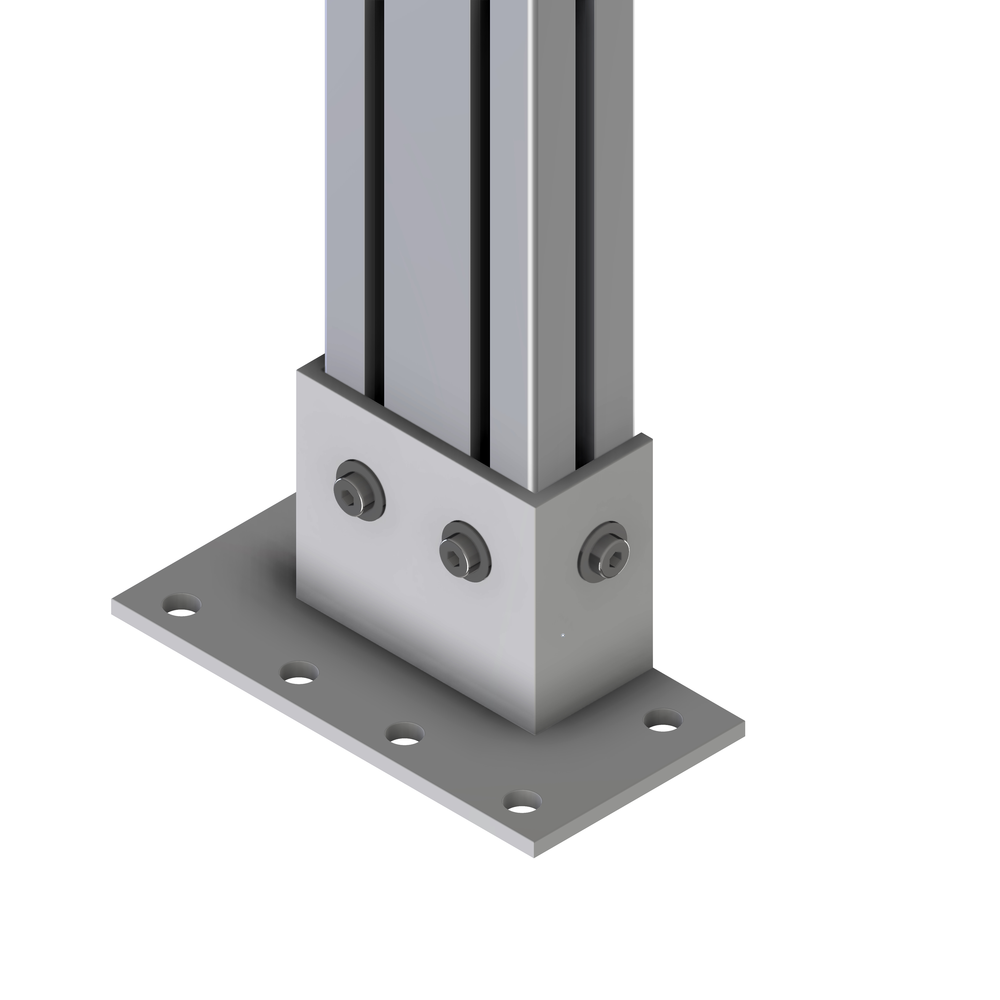 Močna jeklena podporna noga Foot 90 S za talno ali stensko pritrditev robustnih konstrukcij iz profilov do velikosti 90 x 180.