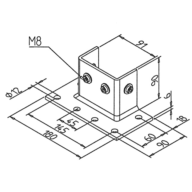 • Priključek za profile z največjo dimenzijo 45 x 90, 90 x 90 in 90 x 180