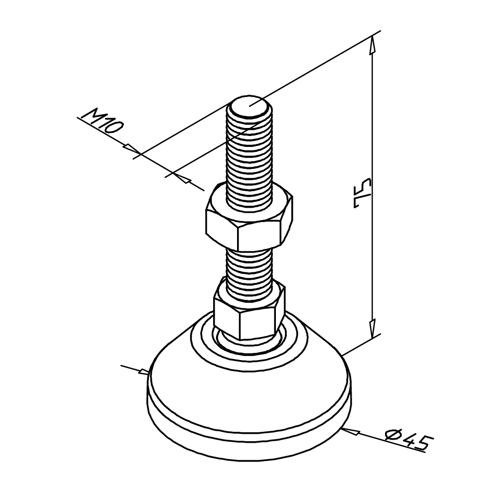 Nastavljiva noga M10 D45 L=75 z ESD zaščito za stabilno in varno pritrditev alu konstrukcij v ESD občutljivih industrijskih okoljih.