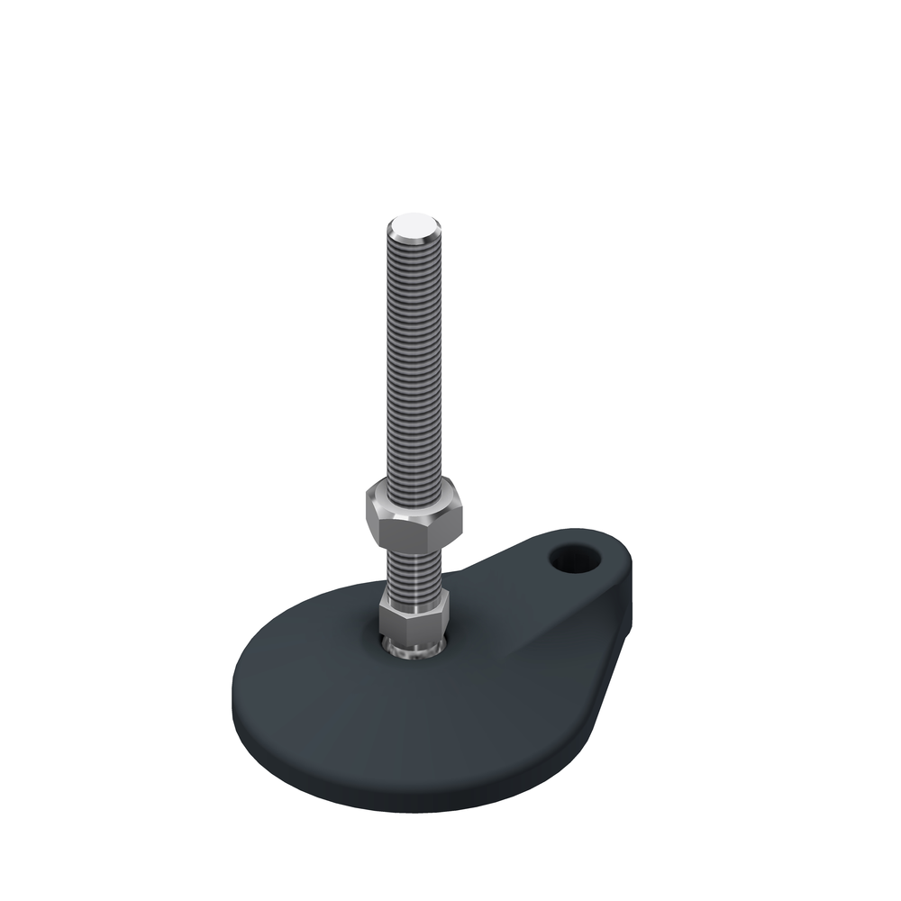 Nastavljiva noga M12 D80 z eno pritrdilno luknjo za stabilno podporo in enostavno nastavitev višine aluminijastih konstrukcij.