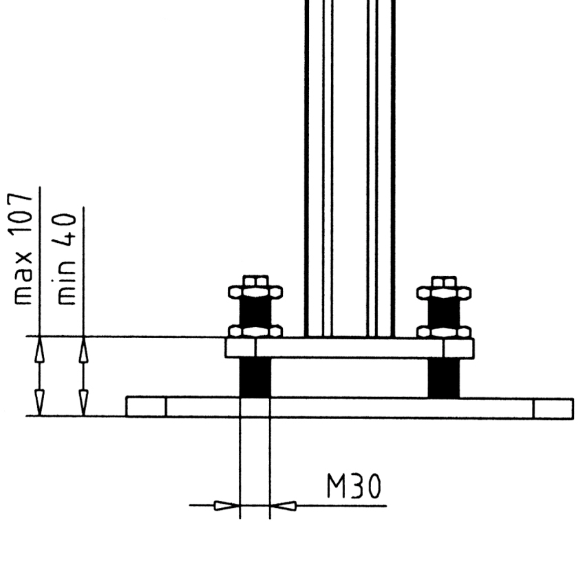 • Nastavite višino z obračanjem vijaka M30 in pritrdite s kontramatico