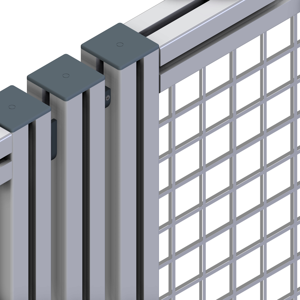 Kotnik GD-K za pritrditev zaščitnih enot iz različnih profilov. Primeren za različne možnosti montaže, tudi z gibljivimi loputami.