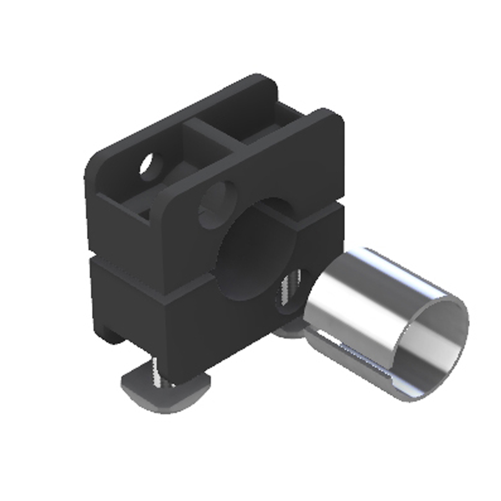 Nosilec stikala bližine za pritrditev stikal premera 18 mm v profilnih konstrukcijah in linearnih oseh, ki zagotavlja stabilno in natančno montažo.