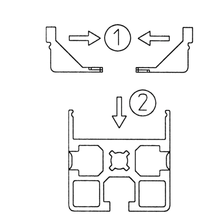 Za daljše trakove valjev ali večje obremenitve priporočamo: - vstavitev vzdolžnih ali prečnih konstrukcijskih profilov spodaj za podporo - vstavitev traku valjev v profil 45 FRS, ident št.201152/0 s tem je mogoče tudi pokriti prostore med valji; dosežena je višina sistema (SH) 54 mm
