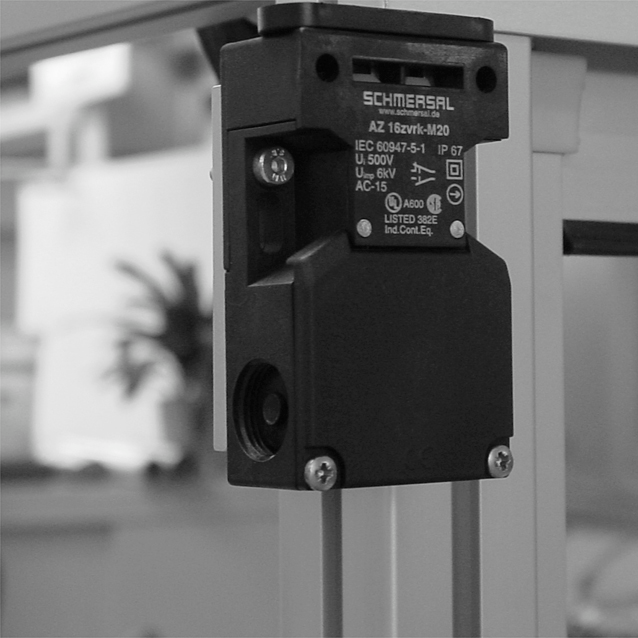 Kotni nosilec za varnostno stikalo, ki omogoča zanesljivo pritrditev in optimalno namestitev varnostnih stikal.