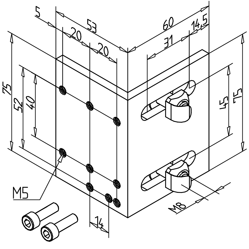 Kotni nosilec za varnostno stikalo z maticami in možnostjo pozicijskega fiksiranja za natančno in stabilno pritrditev.