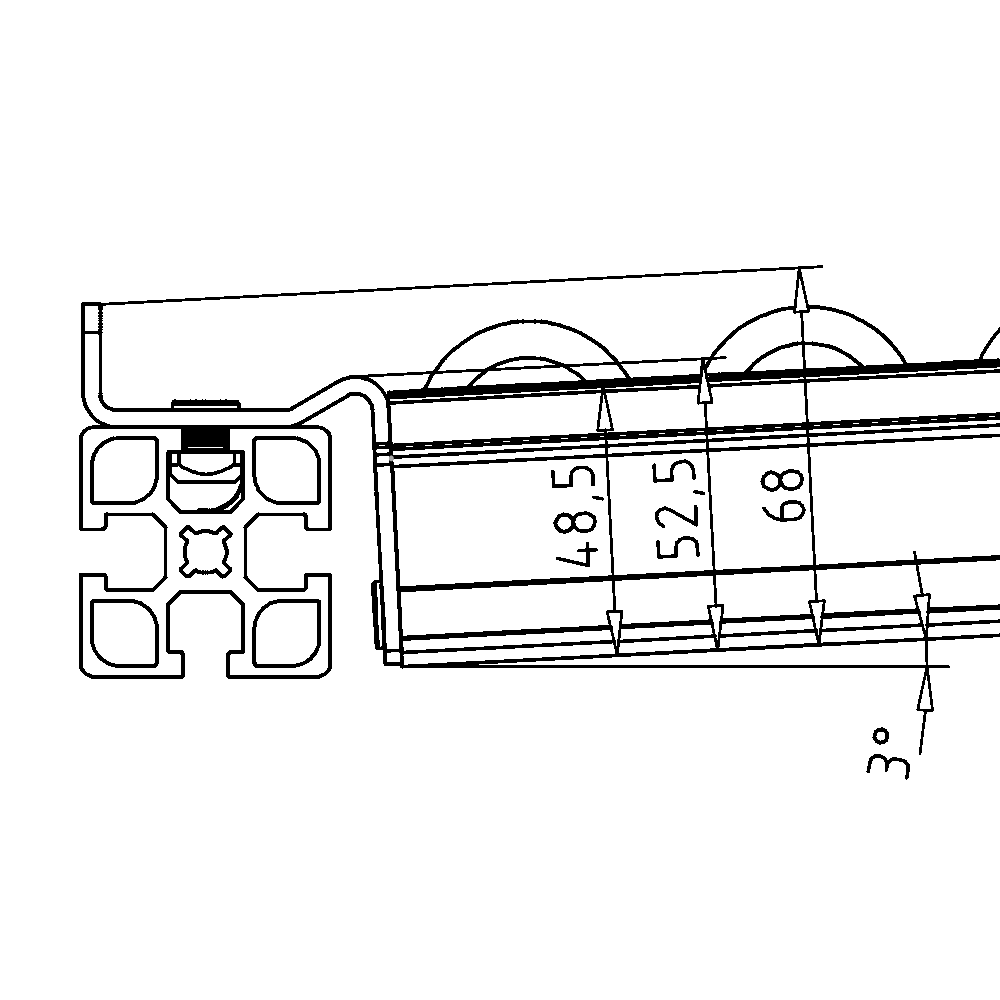 • Vstavite in privijte navoj M8 v sredinsko odprtino na končni ploskvi profila, nato namestite celoten valjčni trak na prečno gred in pritrdite