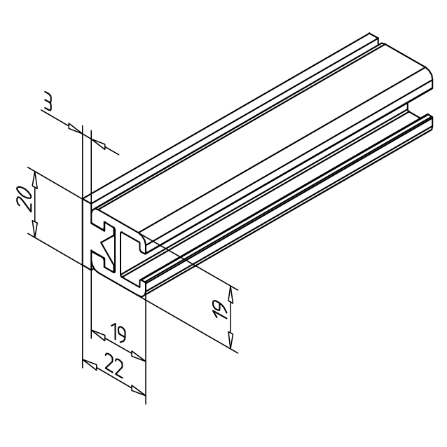 • Kvadratna matica M8 iz montažnega kompleta za stransko vodilo nosilca v sprejemni utor