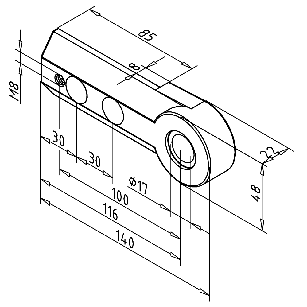 Priključitev vtiča na motorje ali verižna kolesa na prečni gredi do maks. Ø 17 mm