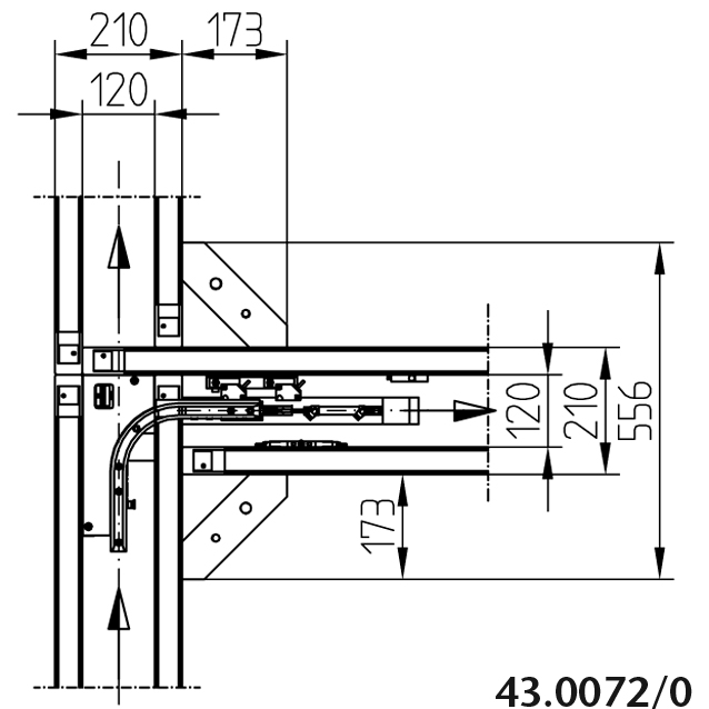 • Pri aktivnem izhodnem prenosu se WT iz tira preusmeri pod kotom 90° v prečno transportno pot. Orientacija WT-ja se ne spremeni.