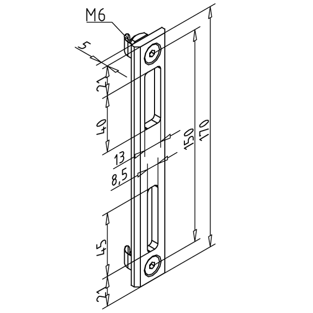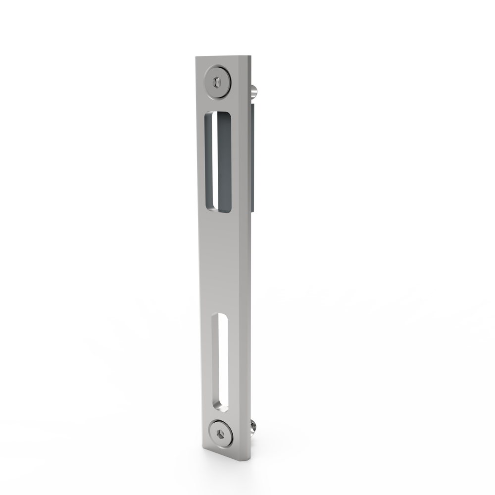 Plošča za ključavnico za vrata, zasnovana za zanesljivo pritrditev ključavnice brez dodatnih posegov v profil vrat. Enostavna montaža in dolgotrajna uporaba.