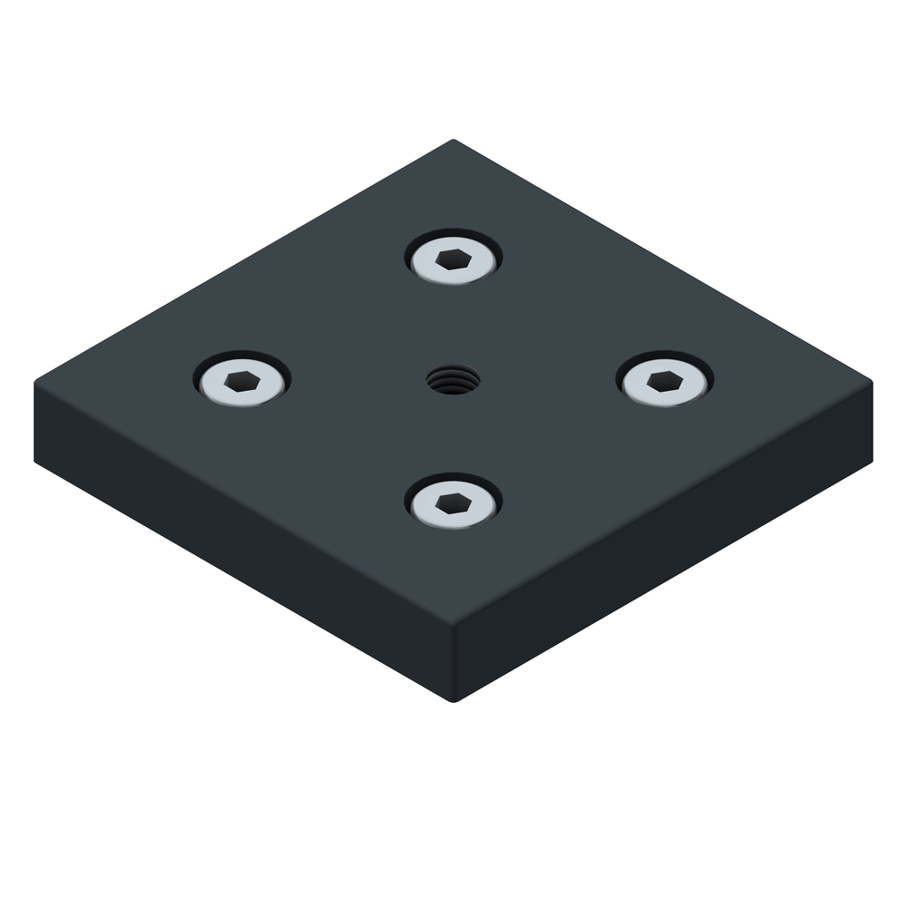 Prevodna pritrdilna plošča 90x90 M10 za namestitev gibljivih nog in koles na aluminijaste profile, ki zagotavlja fleksibilnost in stabilnost različnih konstrukcij.