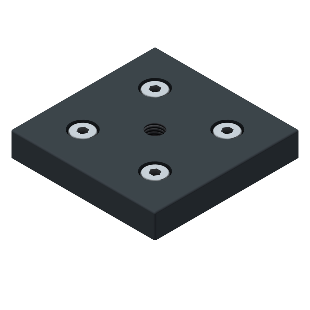 Prevodna pritrdilna plošča 90x90 M12 za namestitev gibljivih nog in koles na aluminijaste profile, ki zagotavlja fleksibilnost in stabilnost različnih konstrukcij.