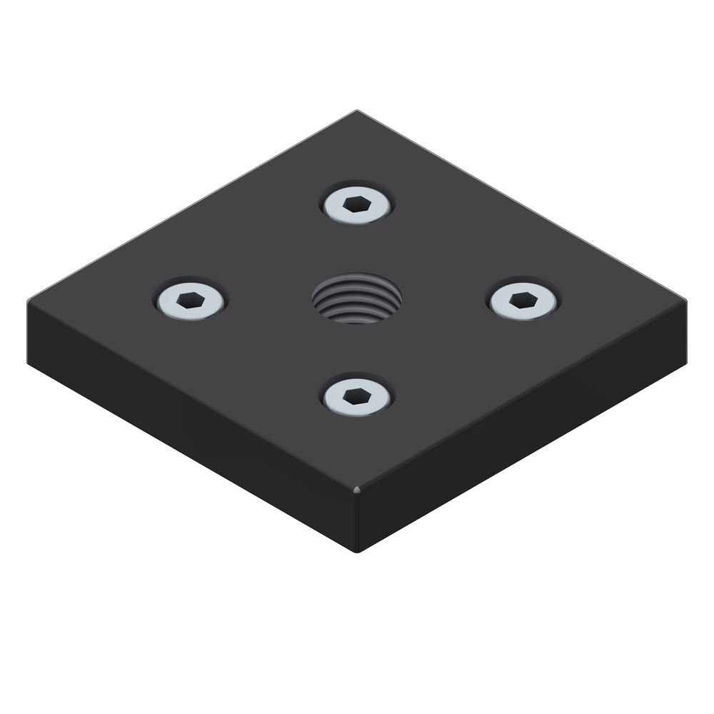 Pritrdilna plošča 90x90 M20 za namestitev gibljivih nog in koles na aluminijaste profile, ki zagotavlja fleksibilnost in stabilnost različnih konstrukcij.